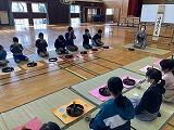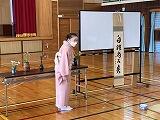 体育館に畳を敷いて茶室の空間を作り、普段あまり慣れていない正座をして、ぴりっとした雰囲気の中、茶道のもつ日本人の心やおもてなしの心にふれることができ、たいへん貴重で楽しい体験をすることができました。