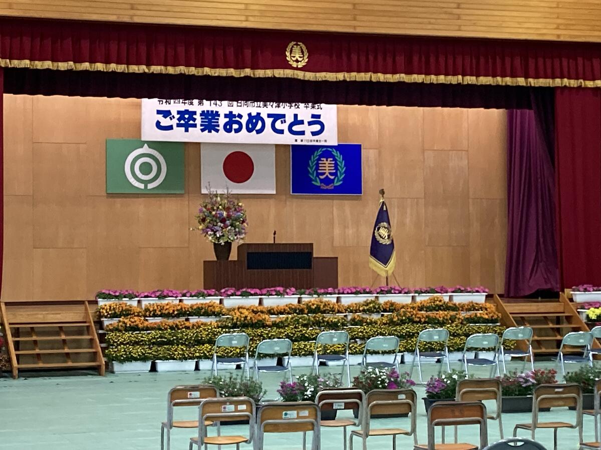 卒業式が行われる体育館はじめ6年教室等では、卒業生の晴れの門出を祝えるように華やかに彩られました。