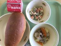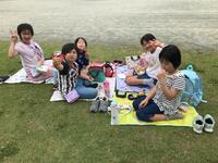 先週、春の遠足が実施されました。当日は天候が不安定のため、校内遠足として行いました。教室や体育館で遊びを工夫し、各学年とも仲良く過ごしています。お弁当は、運動場に出て、芝生の上にすわって食べました。