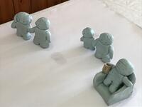 今月、校内では児童が図工の時間につくった作品が数多く展示されています。各学年の自由な発想による豊かな作品を見ることができます。5年生の粘土作品は、窓枠の手すりを利用しての腰掛ける人や地球儀上の海でサーフィンをする人など楽しいものばかりです。日常の学校の風景が新鮮に感じられました。