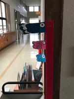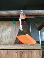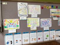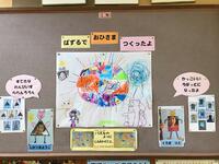 図画工作の学習では、様々な作品の表現方法を学んでいます。校舎内の柱や階段手すりを利用して、子どもたちは、自らの発想で作品を仕上げていました。遠近を意識して作られており、見る角度によっても見え方が違ってきますね。