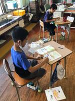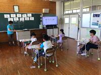 小学校では、英語学習が進められています。学年に応じて、英語に親しむ取組が行われます。英語の教科書やデジタル機器を使っての日常英会話をベースにして勉強しています。ALT(外国語指導助手)のメリオン・エドワーズ先生の協力も得ながら、英語に親しみ身近な語学として学んでいるところです。