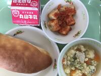 ※写真は大人の分量です。児童の体格に合わせたパン、おかず量となります。