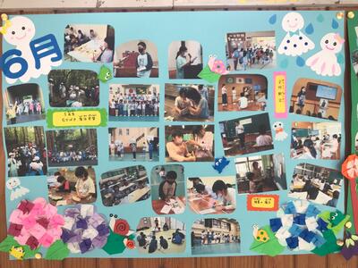 いよいよ1学期も明日(21日)までとなりました。1学期を振り返ると様々な行事が思い出されます。毎月の様子をスクールサポートスタッフの方が掲示物として作成してくれています。入学式から始まり、子どもたちの活動の様子を思い起こすことができます。
