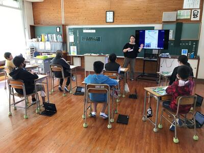 今月、学校では授業のあり方を考える勉強会(研修会)が行われています。先生方が互いに授業を見せ合い、放課後に協議することで、子どもたちにとって「分かる授業」「楽しい授業」となるよう考えています。授業の進め方はもちろんですが、タブレットやテレビ画面をつかって理解しやすい指導に心がけていました。また、ネット検索で様々な考えにふれたり、互いの意見を伝え合う学習を行ってもいます。