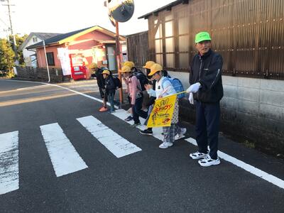また、各地域では見守り隊の方々がおられ、子どもたちの安全な登校を支えていただいています。毎朝、子どもたちと一緒に登校していただける見守り隊の方もおられ、本当に有り難く感じています。地域の支えもあり、子どもたちは安全、元気に学校へと登校してくれています。