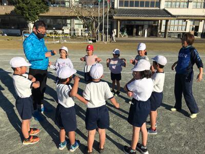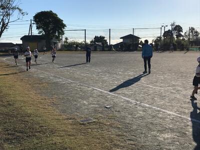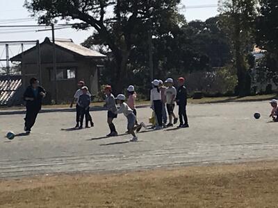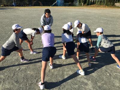 体育の時間も運動場で持久走の練習を行っています。授業の初めに準備運動をし、体調を整えながら走る姿が見られます。今は、ボール遊びやサッカーを授業の中で取り組んでいます。毎回、運動場を走り回り活動しています。