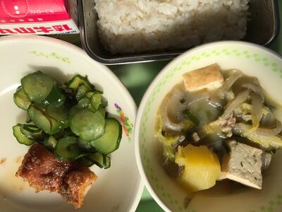 豚肉がステーキソースで味付けしてあり、お肉の旨みをしっかりと味わうことが出来ました。つみれ汁も量が十分にありました。