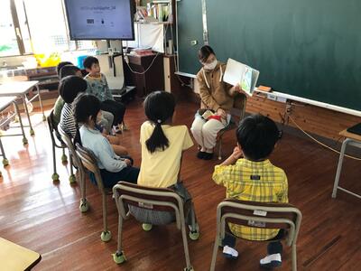 今月も読み聞かせの方々から多くの本を紹介してもらいました。毎回、子どもたちは絵本の読み聞かせを楽しみにしており、しっかりと話を聞いています。学校生活にうるおいと変化をもたらせ、よい刺激となると思います。読み聞かせ「クレヨン」の方々、今月も大変ありがとうございました。