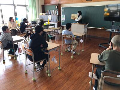 日向神話の系譜や神話の紹介、美々津神武天皇やお舟出や立磐神社について、分かりやすく語ってくれました。改めてふるさと美々津を知る機会となり、大変有意義な授業となりました。授業を行ってくださった方々に心より感謝申し上げます。