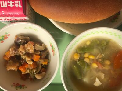 カボチャのそぼろ煮は、昔から変わらない給食メニューです。皆さんも一度は食べたことがあるのでしょうね。
