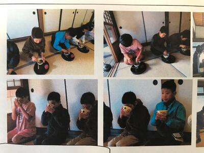 4年生がふるさと学習として、美々津の民家で茶道教室を行いました。毎年、茶道の先生方にお茶の立て方や礼法作法を教わっているものです。正座をして、自分で立てたお茶は別格の味がしたようです。