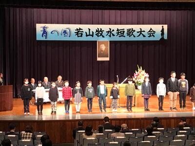 青の國 若山牧水短歌大会の表彰式が行われました。小学生の部(833首)の中から、6名もの児童作品が佳作入賞しました。子どもたちの素直で純粋な心が短歌として表現できているからこそと喜ばしく思いました。