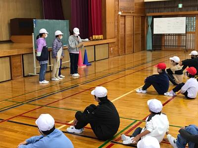 児童会活動として、全校児童で交流遊びを行いました。各委員会がみんなで楽しめる遊びを提案し、全校児童が参加しました。