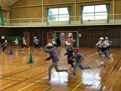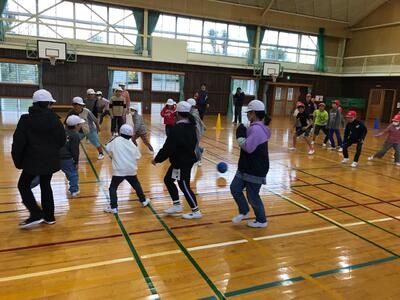 前半は転がしドッチボール、後半がケイドロ(警察と泥棒鬼ごっご)です。みんなが元気にはしゃぎ走り回るなど、冬休み前の思い出に残る時間となりました。
