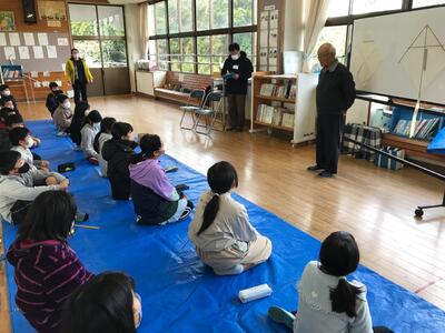 5・6年生は、美々津公民館主催による凧作り教室を行いました。12月に凧づくりをして、年が明けた1月に美々津海岸で凧揚げを実施します。美々津地区は、神武天皇御船出の地として有名であり、数々の神話伝説が残っています。この凧づくりも神武天皇が御船出をする際、風向きや強さを確かめるために凧を使ったことに由来しています。
