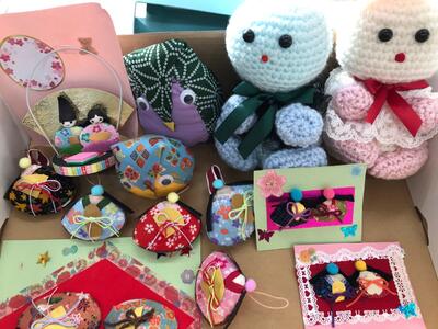 毎年、JRC奉仕団の方々が学校を訪問された際、手作りのお土産を届けてくれます。今年もお人形や雛飾り作品を頂きました。3月の雛祭りに合わせ、学校で飾らせていただきます。ありがとうございました。