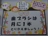 潰れた状態の歯ブラシで歯磨きすると、歯磨きの効果があがらないばかりか、大切な歯を痛めてしまうことになります。お家の方でも、お子様が持ち帰った際に点検して、定期的に交換していただけるとありがたいです。よろしくお願いします。