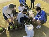 地域ボランティア活動の一環として、美々津中3年生と本校6年生との花植え作業、また中学生から礼法(あいさつや言葉遣いなど礼儀全般)の指導をしていただきました。
