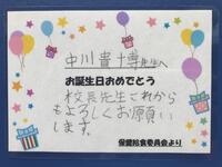 家庭科室を飾り、互いに誕生日おめでとうと拍手を送っています。保健給食委員会からのお祝いメッセージも送られ、異学年及び先生との素敵な交流の場となっていました。次回は、11月に(10,11月生まれ)に行われます。