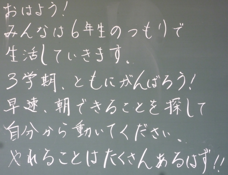 3学期は1年のまとめの学期であり、そして次の学年に向けて準備する大切な学期でもあります。素晴らしい3学期になれるように、1年のまとめと次の学年に向けての準備をしっかり頑張りましょう。