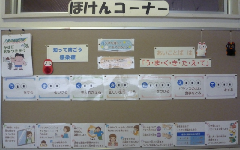 養護教諭の先生は、保健室廊下の設営をされていました。皆さん◯◯部分の答えは分かりますか。