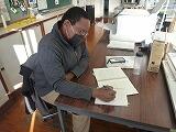 職員室で待機されているクリストファー先生は、子どもたちが楽しく分かりやすく学習できるように、ノートに丁寧にびっしりと書き込まれ、授業の構想や流れを入念に準備され臨まれています。いつも本当に頭が下がる思いです。毎回、様々に準備していただき、ありがとうございます。