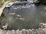 【美々津小校舎及び元気に泳ぐ錦鯉】