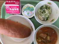 スパゲティは味が濃いめで美味しいです。サラダには甘夏みかんが使用されており、こちらはさっぱり味でした。栄養と味のバランスがとれた給食です。