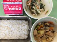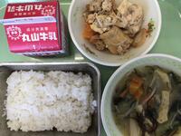 煮物はよく調理されており、やわらかく食べやすいです。鶏肉、大豆、ごぼう、コンニャク、竹の子、にんじん、本当に沢山の具材が入っていました。マヨ和えも味が十分にからめてあり美味しくいただきました。