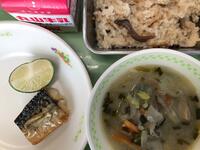 たっぷりとへべずを搾って焼き魚をいただきました。日向市の特産物も給食の食材として、よく使われています。