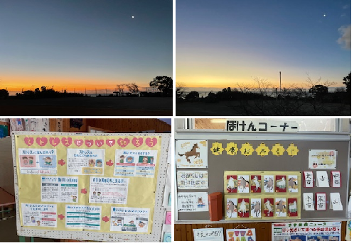 保健室前と玄関前には、子どもたちの目を引く掲示物がありました。保健面から、掲示物も工夫されています。