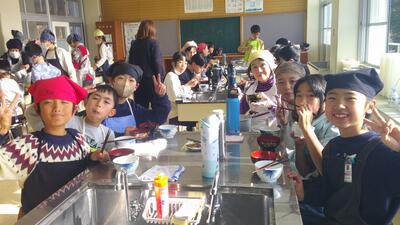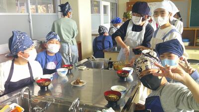 5年生が、家庭科の調理実習で「ご飯と味噌汁」作りにチャレンジしました。地域のはげまし隊の皆様にご協力いただき、グループごとに実習を行いました。先日のむかばき宿泊学習の飯盒炊飯の経験を生かし、どのグループも美味しくできていました。