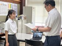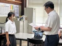 リモートで、吹奏楽部(県コンクール金賞!)、バレー部、ソフトテニス部の表彰をしたあとに、始業式を行いました。各学年の代表が2学期の目標について話をしてくれました。「1学期の修学旅行での経験を活かしたい」「テストまでに苦手科目を克服し、学習内容のレベルを上げる」「勉強と手伝いを両立する」など、それぞれが具体的に考えた目標で感心しました。
