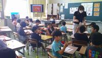 日向がサーフィン王国であることや小倉ヶ浜が「日本の渚100選」に選ばれていることなどについて教えてくださり、県外の人にも日向のよさを伝えてほしいという話をしてくださいました。子どもたちは、自分たちの住む日向の素晴らしさに改めて気付くことができたようです。