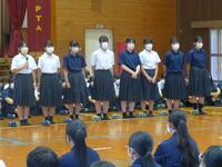 16日(火)には、選手推戴式も行われ、各部から大会に臨む決意の発表がありました。中には、1人だけで活動している部活動生もいますが、大きな声でとても立派に発表していて感心しました。