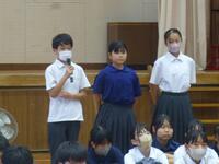 終業式では、代表児童が、1学期にできたこと・がんばったことを振り返り、3学期もこつこつと努力を続けたいと発表しました。