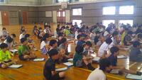 赤団、白団、青団の団長が力強い決意を述べ、団員たちも大きな拍手で応えました。リーダーの紹介やスローガン発表もあり、運動会に向けて一気に気持ちが高まる式となりました。本格的な練習は、2学期になってからですが、それぞれの団の絆が深まるひとときとなり、本番がとても楽しみになりました。