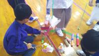 おもちゃは、風、磁石、ゴム、空気、おもりの5つそれぞれの動力を活用して作ったものです。2年生は、1年生を楽しませるために、いろいろと工夫しておもちゃを作っていました。