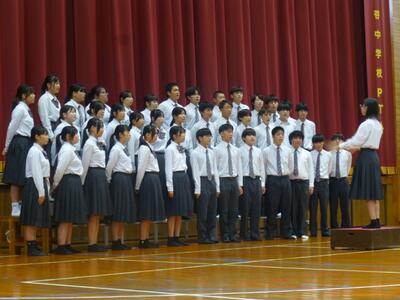 9年生はどの学級も大変聴きごたえがある歌声で、最上級生として合唱のお手本を示してくれたと思います。立派な姿でした。