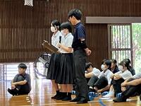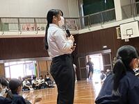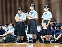 生徒指導主事から「あいさつは、人と人をつなぎ、生活を豊かにする」という話があり、先取りあいさつ【相手の目を見て 自分から 進んで元気よく】のお手本を生活委員会が示してくれました。