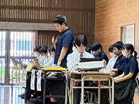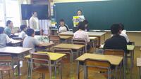 7年生では、7月3日(木)の総合的な学習の時間に、日向市内でさまざまなお仕事をされている方にお話をしていただく「よのなか教室」を開催しました。日向市キャリア教育支援センターのご協力によるものです。