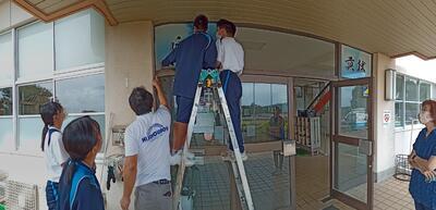 また、下の写真のように、大王谷小学校の看板もリニューアルされました。大王谷小学校がどんどんきれいになります。暑い中の作業、ありがとうございました。