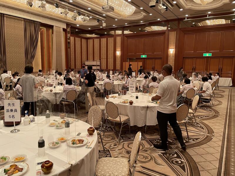 昼食の時間は、大広間でお弁当を食べたようです。コロナ対策もバッチリで、黙食だったみたいです。