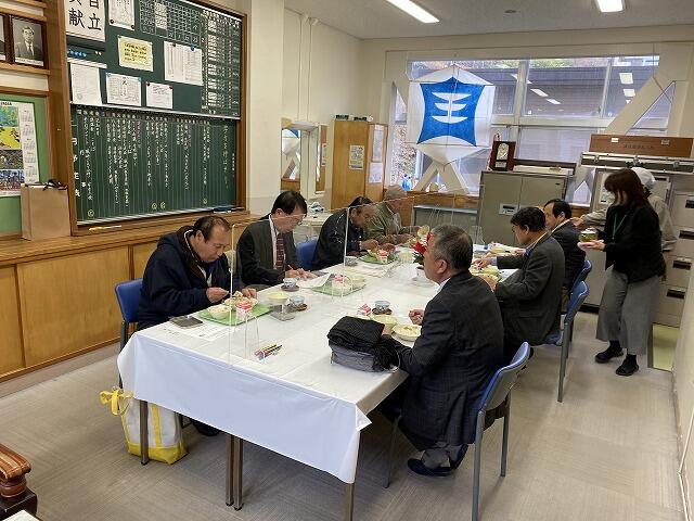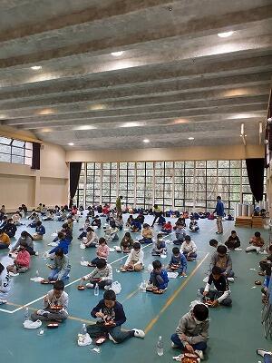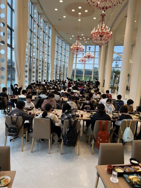 昼食の時間は、大広間でお弁当を食べたようです。コロナ対策もバッチリで、黙食だったみたいです。
