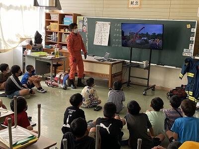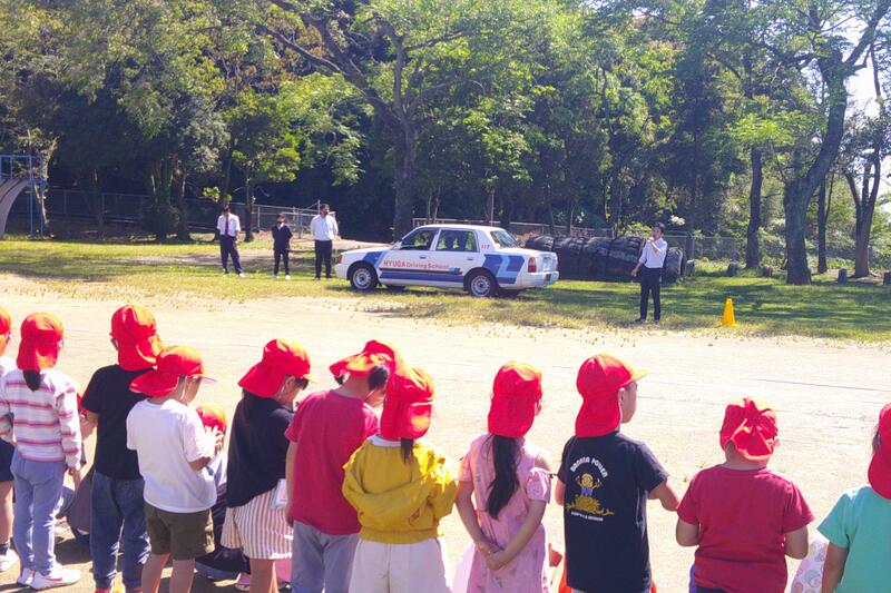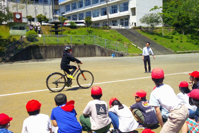 日向自動車学校から4名の講師の方を招いて交通教室を実施しました。1・2年は横断歩道の渡り方、3年から6年は自転車の乗り方を学びました。自動車はブレーキをかけても急に止まれない実演も行っていただき、たいへん勉強になりました。