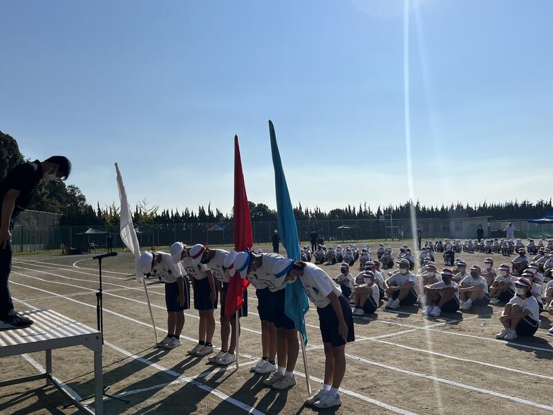 9月30日(金)に、中等部グラウンドで体育大会を実施いたしました。3年ぶりに、来賓の方々にもお越しいただき、半日開催ではありましたが、天候にも恵まれ、すばらしい体育大会となりました。