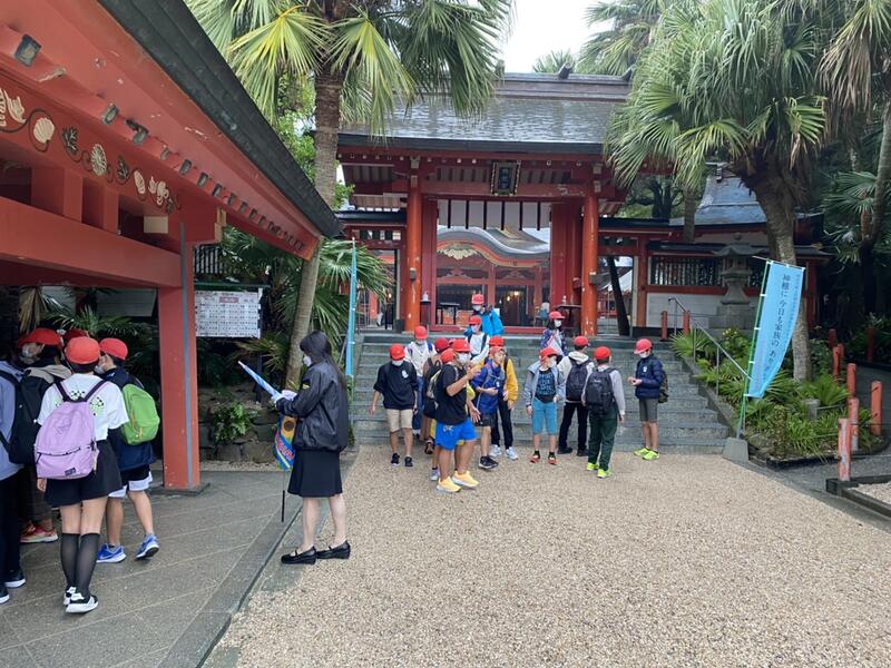 青島神社に行き、その後、貝殻等を使って表札づくりをしました。