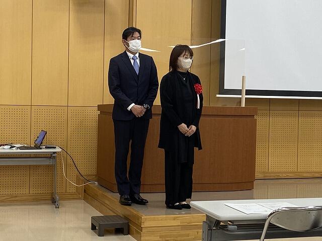 見守り隊を代表して藤村様から「犯罪のない、事故を起こさない安全なまちづくりのために活動していること」「あいさつの大切さ」について話をしていただきました。