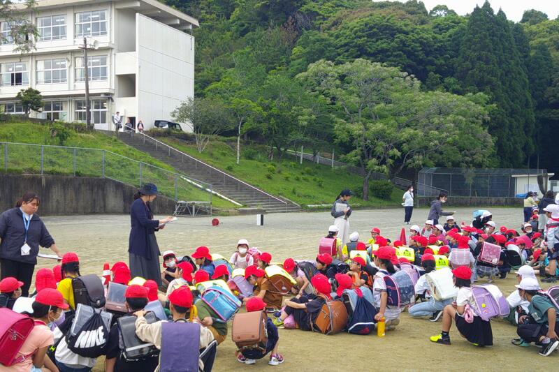 9月22日(木)に初等部では、避難訓練を行いました。日向灘沖を震源とする震度7の地震が発生し、その後、大津波警報が発令されるという想定で、実施されました。児童は、避難するときの約束「お・は・し・も」を守り、真剣に取り組んでいました。「できるだけ高いところに避難すること」、「登下校中や、家に一人でいるときに地震が発生したらどうするか」ということも全体に話をすることができ、有意義な避難訓練となりました。